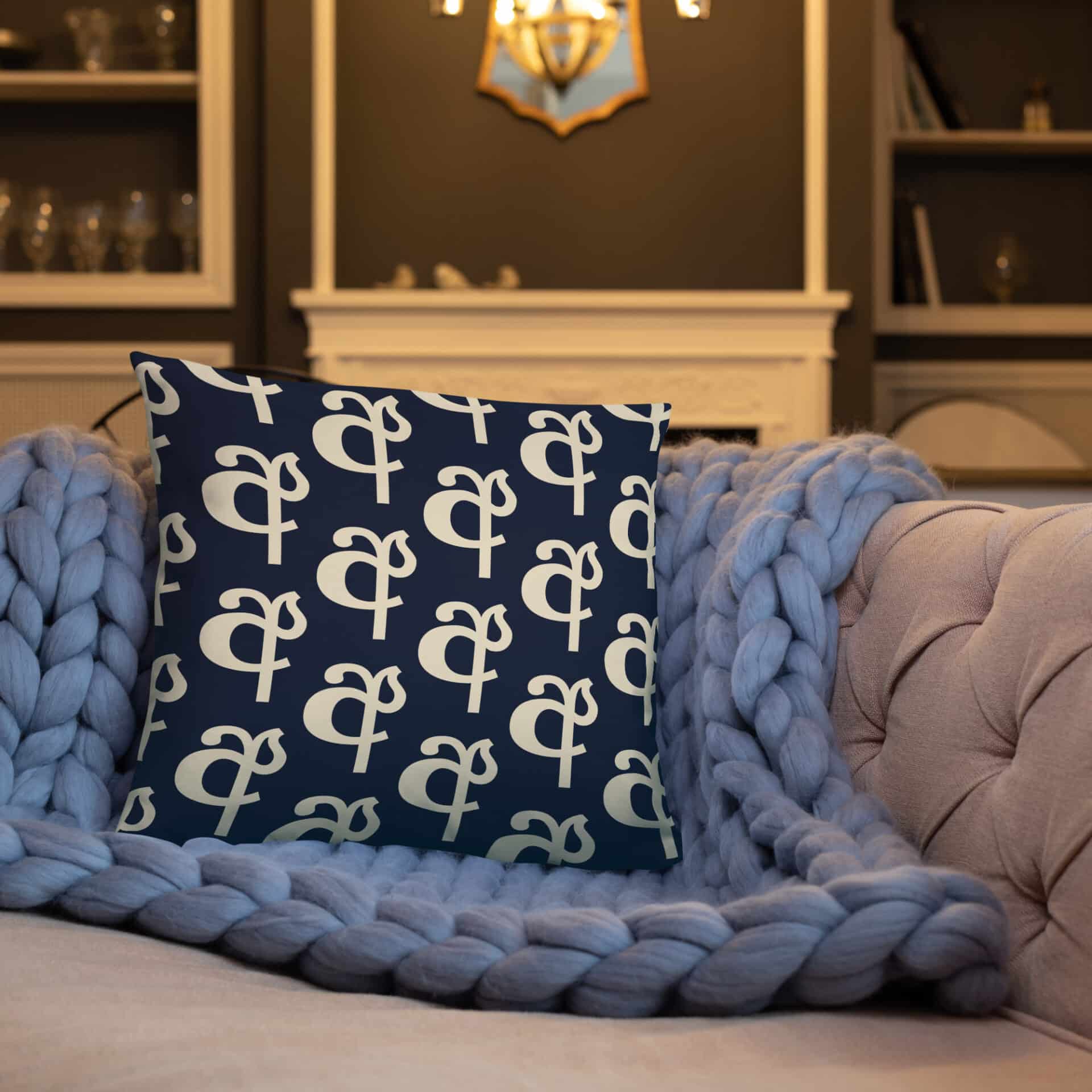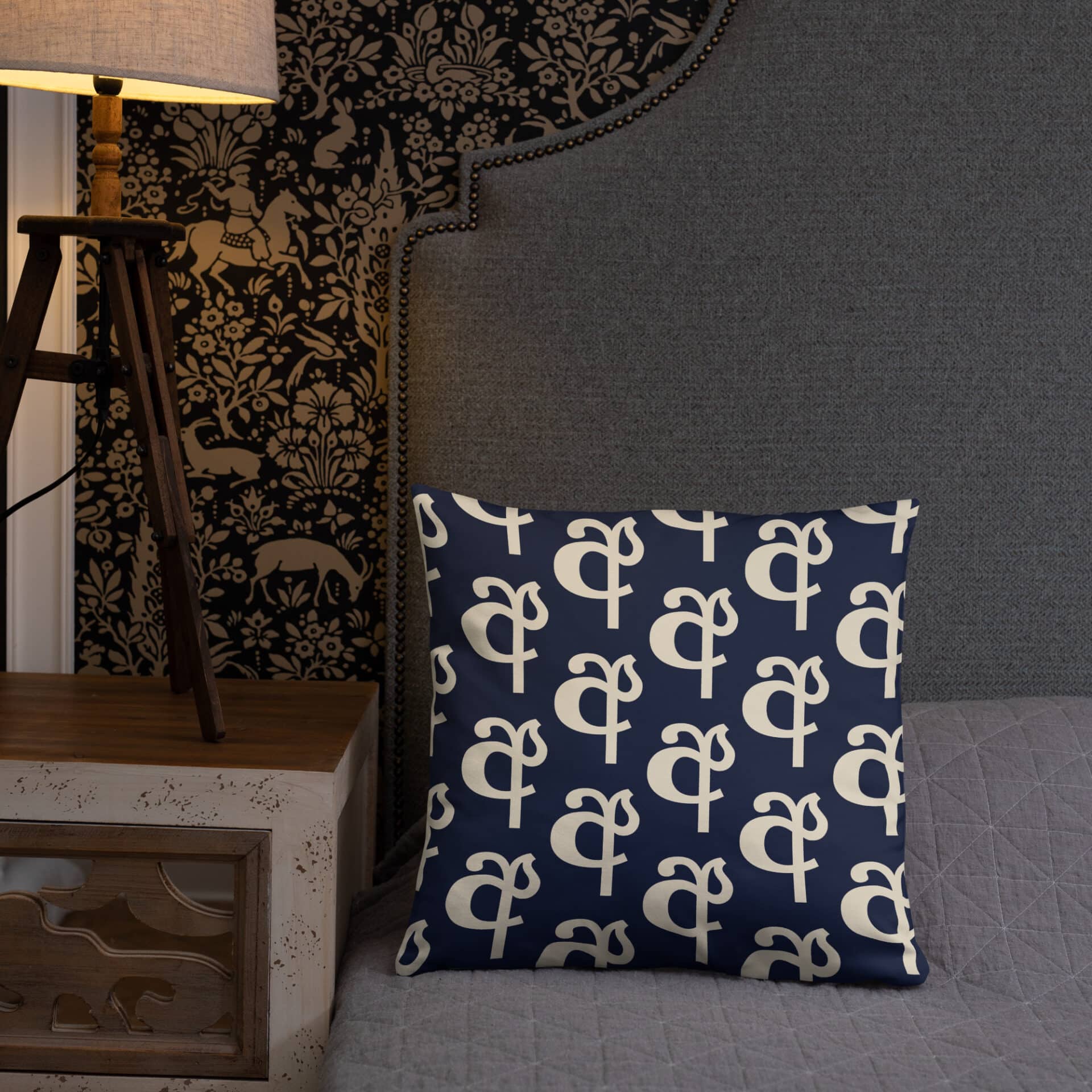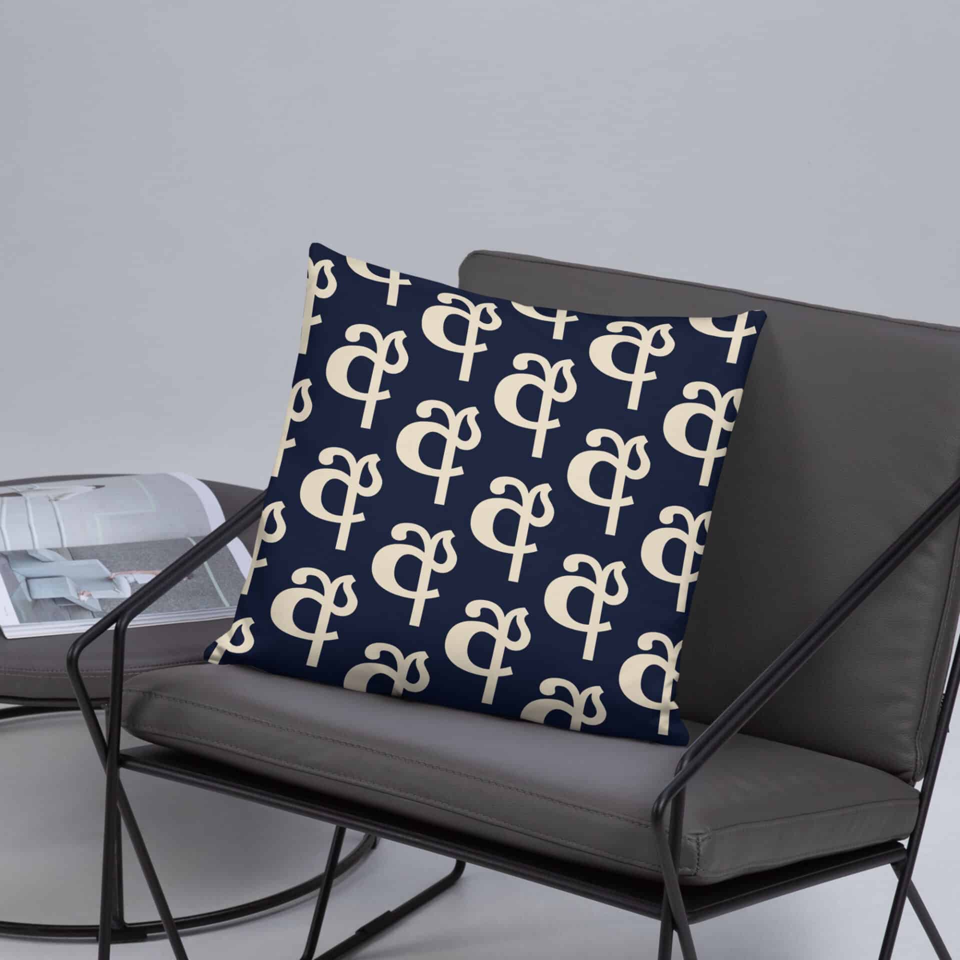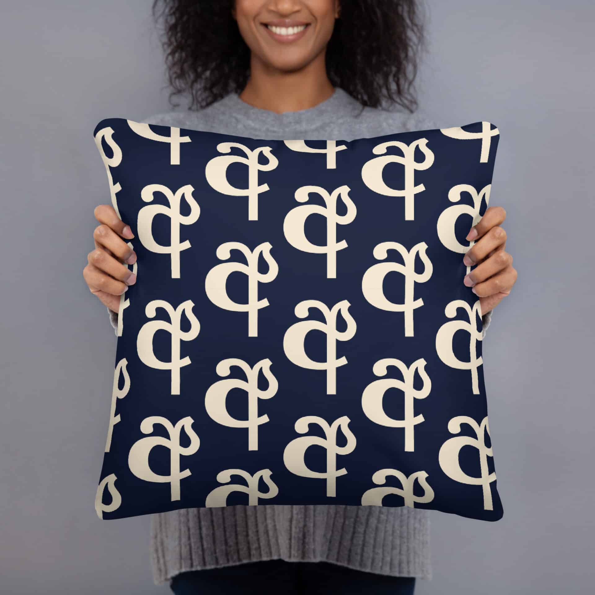 Sinhala Ligature Pillow “අ” – Blue | Embrace Sri Lankan Identity in Every Room