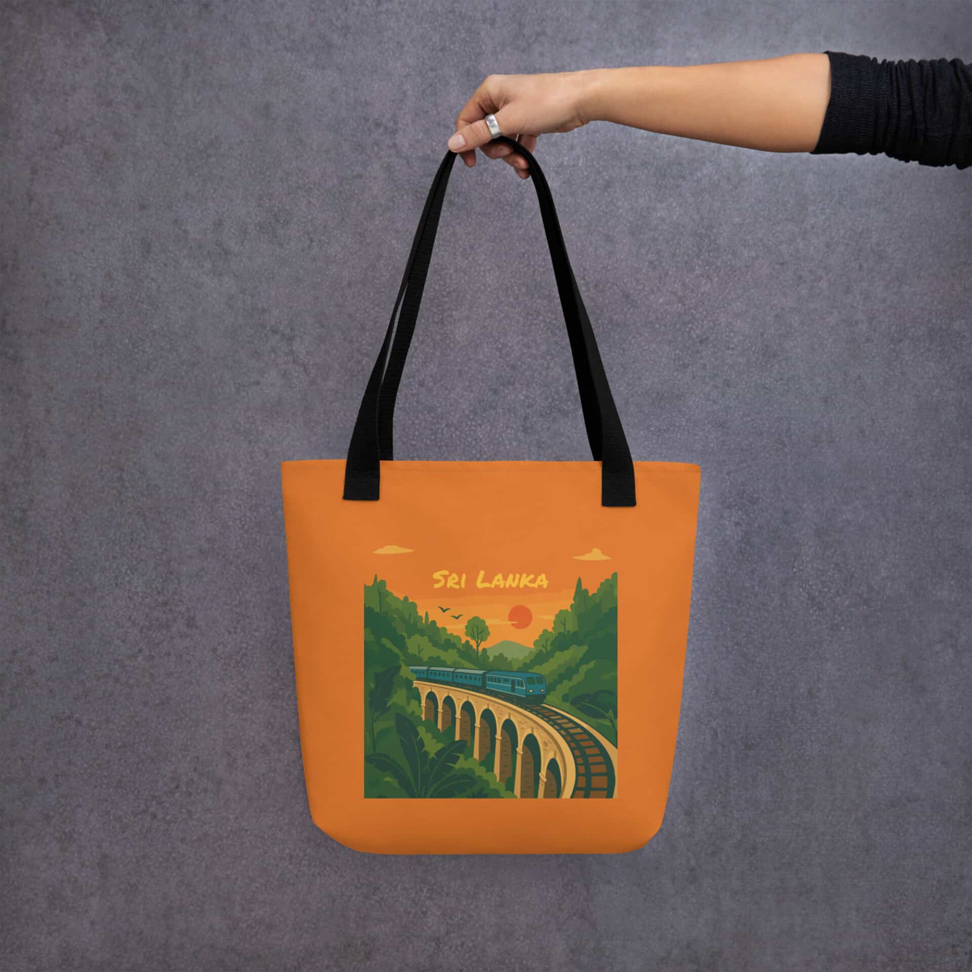 The Nine Arches Whistle Tote Bag, a perfect example of unique Sri Lankan Gifts for friends and family.