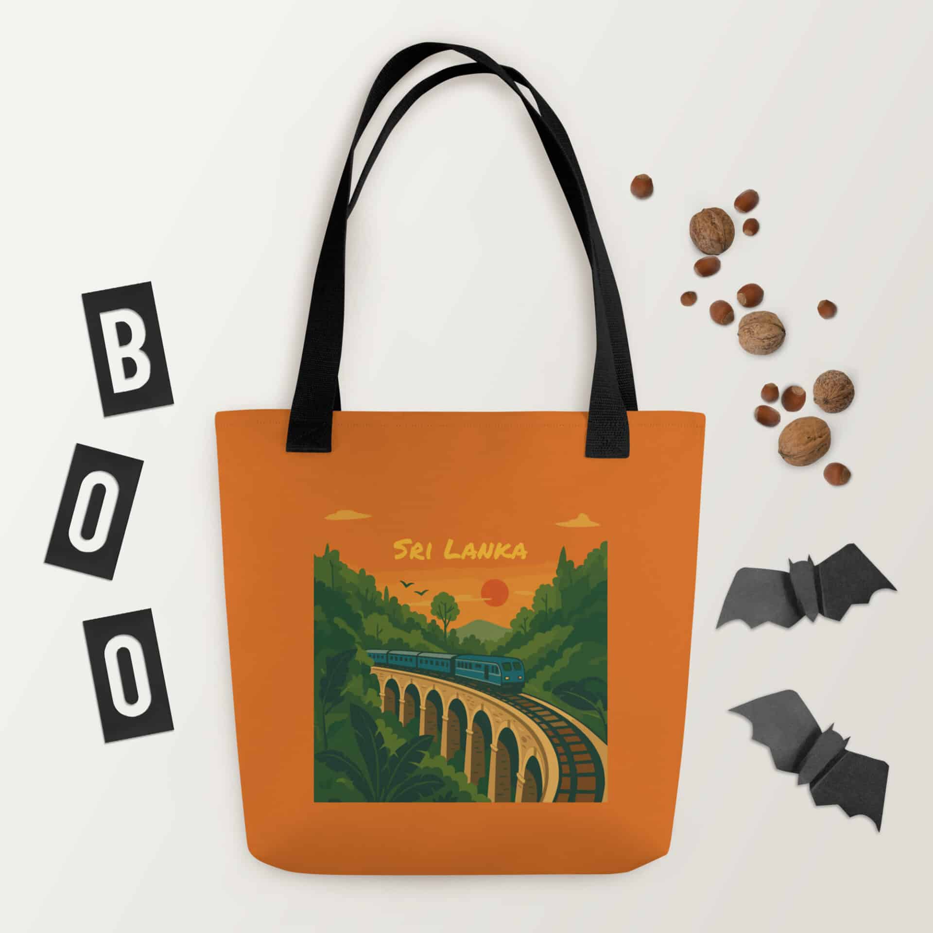 Carry the breathtaking beauty of Ella’s iconic landmark with the Nine Arches Whistle Tote Bag. Featuring a stunning artistic depiction of the world-famous bridge, this tote is a tribute to Sri Lankan ingenuity and natural splendour. Crafted from durable 100% polyester, it is spacious and practical for all your daily essentials, from market trips to university lectures. Its robust cotton bull denim handles ensure comfort and strength, making this tote both stylish and reliable. This piece stands out among Sri Lankan Tote Bags for its unique design and storytelling power. Perfect as a statement accessory or a thoughtful Sri Lankan Gift, it’s a meaningful addition to any Sri Lankan Merch collection, keeping a piece of the hill country close, wherever you are.